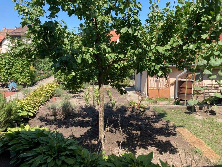 Csillaghegy legjobb utcájában pár éve épült ház gyönyörű veteményeskerttel